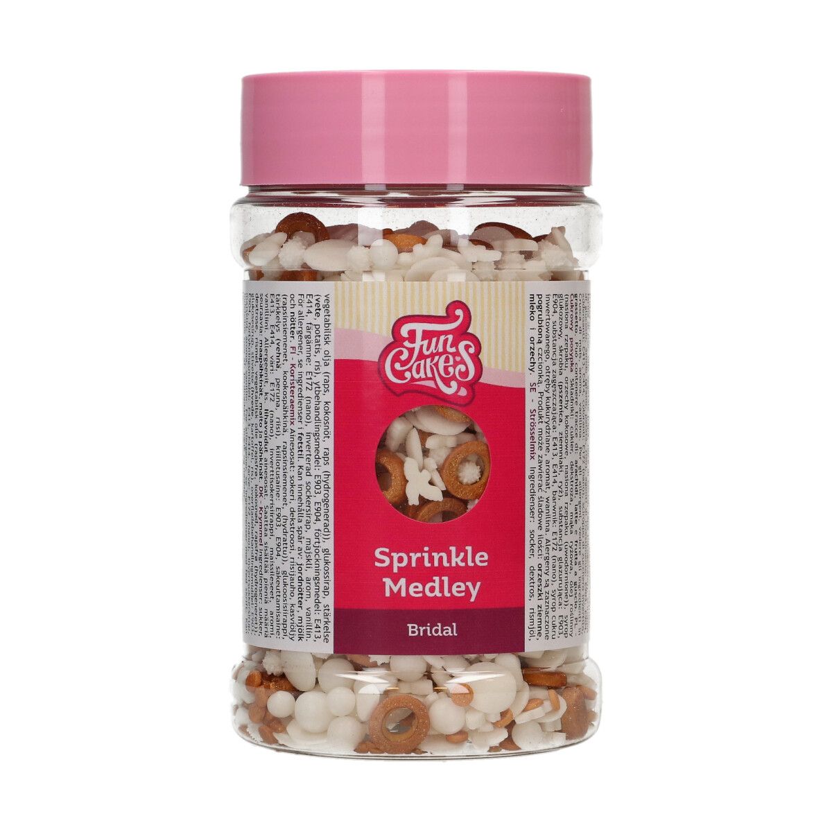 Versier prachtige cupcakes of koekjes voor een bruiloft met deze prachtige sprinkle medley Bridal van FunCakes. Met deze grote pot kun je naar hartenlust decoreren.