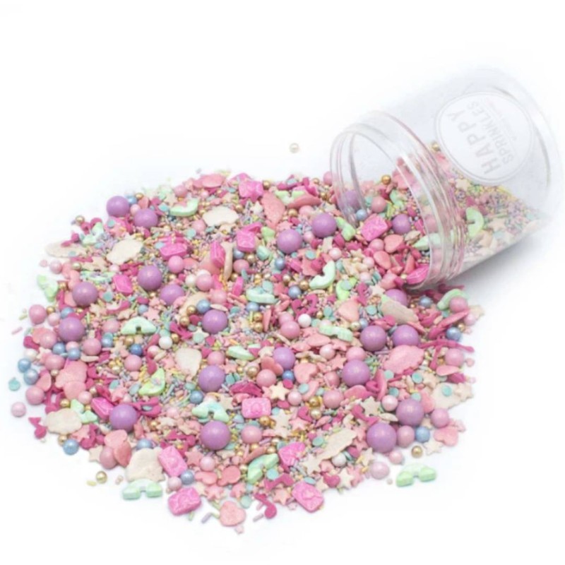 Ingredienten: Suiker, zetmeel (rijst), bloem (tarwemout, tarwe, rijst), tarwegluten, kleurstof (E100, E120, E133, E171), glansmiddel (E903), stabilisator (E414), emulgator lecithine (soja), natuurlijke vanille aroma, cacaoboter, volle melkpoeder, cacaomassa, cacaovetten, volkorenmeel, bakpoeder E500 (ii), plantenextract, appelextract, citroenextract, spirulina-extract, zout. Kan sporen bevatten van noten en gluten (gerst, haver, spelt, rogge).