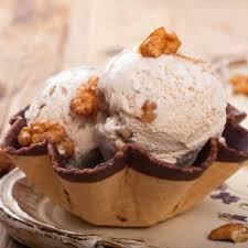 Feestelijke wafelcup gevuld met roomijs voor 1 persoon. Keuze uit vanille, chocolade of mokka.