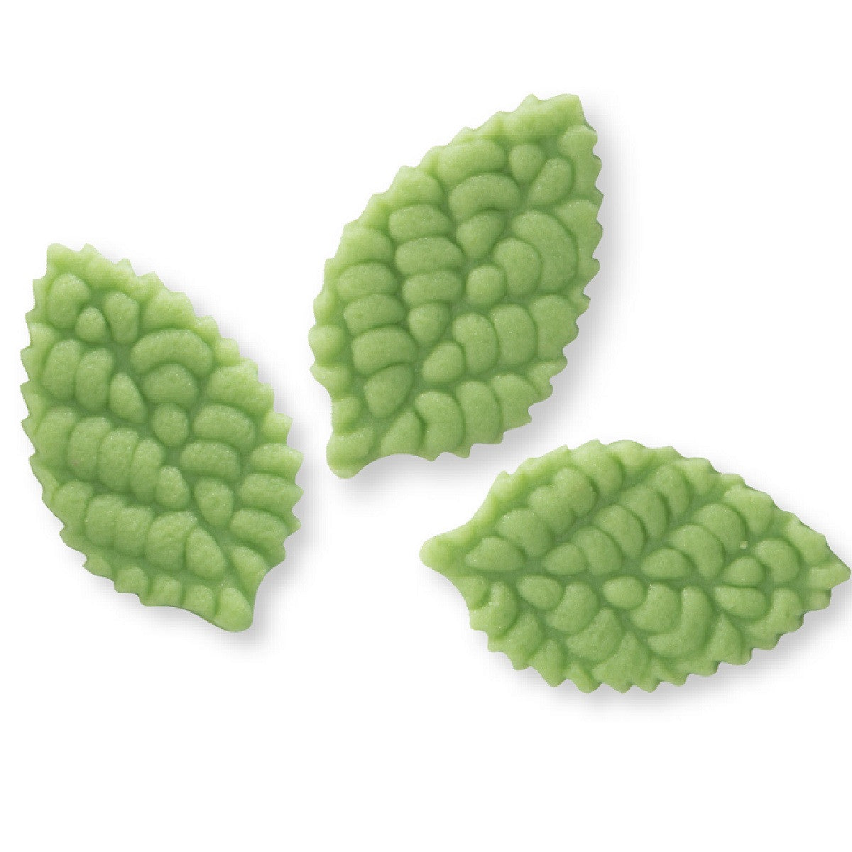 Deze Günthart Marsepein Bladeren Klein 15st bestaat uit diverse bladeren die een mooie decoratie zijn op verschillende lekkernijen. De blaadjes zijn gemaakt van marsepein, hebben een groene kleur en een mooie reliëf als afwerking. De blaadjes zijn ongeveer 3 centimeter lang en kun je goed combineren met de grotere variant. Geef je baksel een finish in touch met deze decoratie. Om jouw baksel helemaal af te maken, kun je deze bladeren gebruiken in combinatie met kleurrijke bloemen van marsepein.