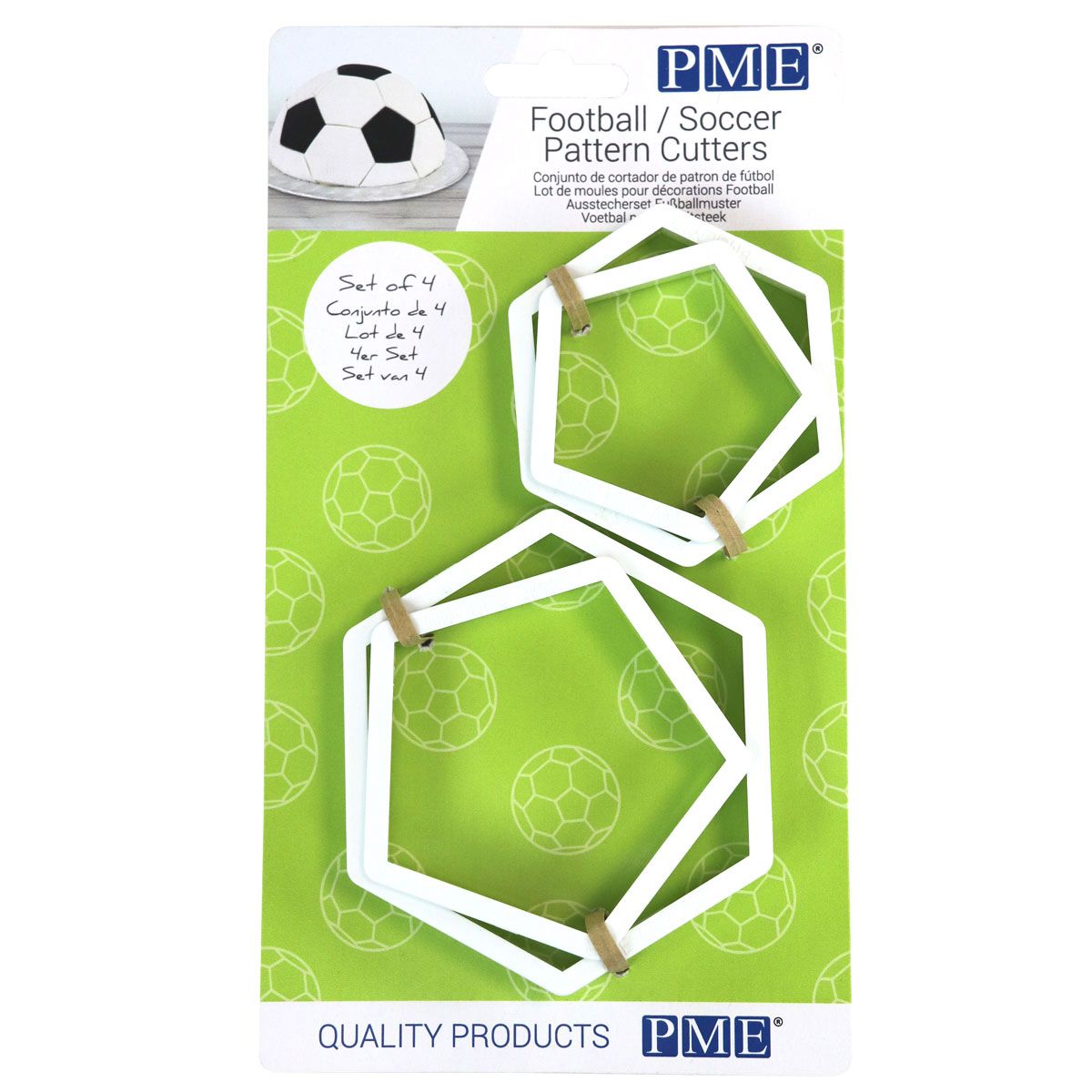 Maak eenvoudig een schitterend voetbal patroon met deze handige vierdelige uitsteker set van PME. De vijfhoekige uitstekers zijn geschikt voor fondant, marsepein, gum paste en meer. Deze set is super voor het maken van voetbal taarten!