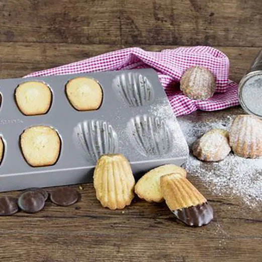 Wij houden van madeleines. Met deze bakvorm bak je de bekende Madeleines. Ze staan ook bekend als berenpoten om fans te dragen.